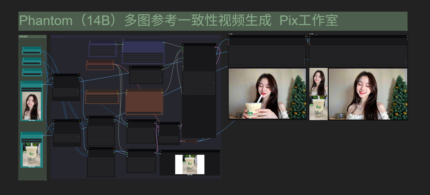 人物在视频一致性一直是难题,字节跳动最新开源的Phantom视频生成框架通过创新的跨模态对齐技术,构建文本-图像-视频三元组数据驱动模型学习,采用动态窗口注意力机制和双条件去噪架构,在人物身份保留、多主体交互及复杂场景生成中实现突破性进展。在虚拟试穿、产品演示等场景中身份一致性达93.7%,超越Vidu、Pika等商业方案,之前开源的1.3B模型已支持多图融合生成,但效果欠佳,目前已发布14B版本,已顺利跑通,大家可以去上面仙宫云地址玩一玩 https://www.xiangongyun.com/image/detail/de2afed6-3a25-4fcd-87f8-11f537a322d2 ,王炸级别项目,缺点就是速度偏慢,4090大概15分钟