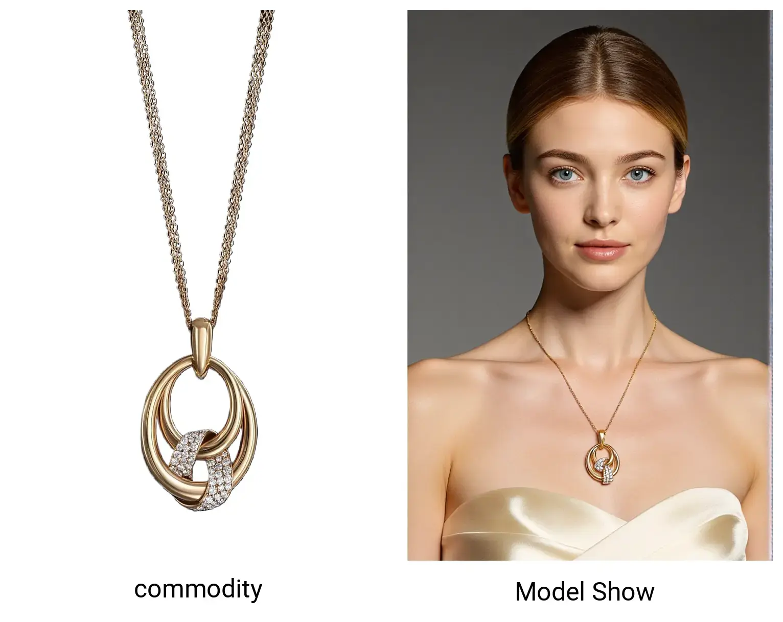 Jewelry necklace to AI model display