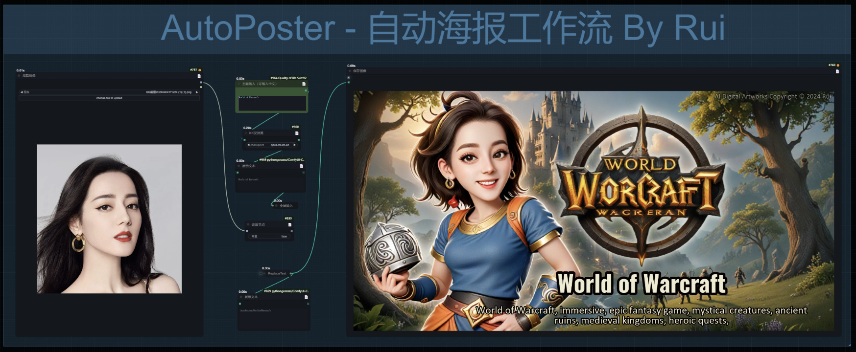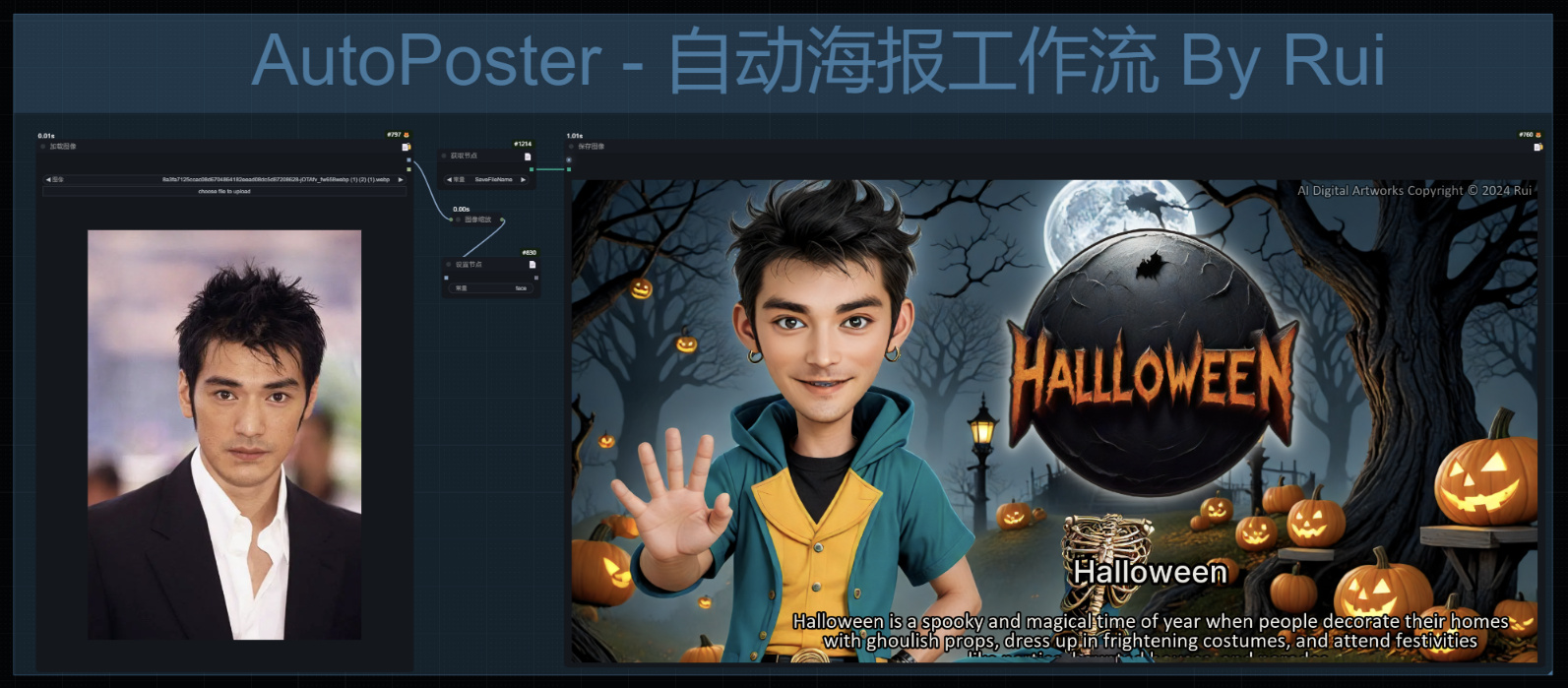 人物的穿着会自动呼应主题,专用lora会设计主题logo,LLM还会编一段应景的副文案。