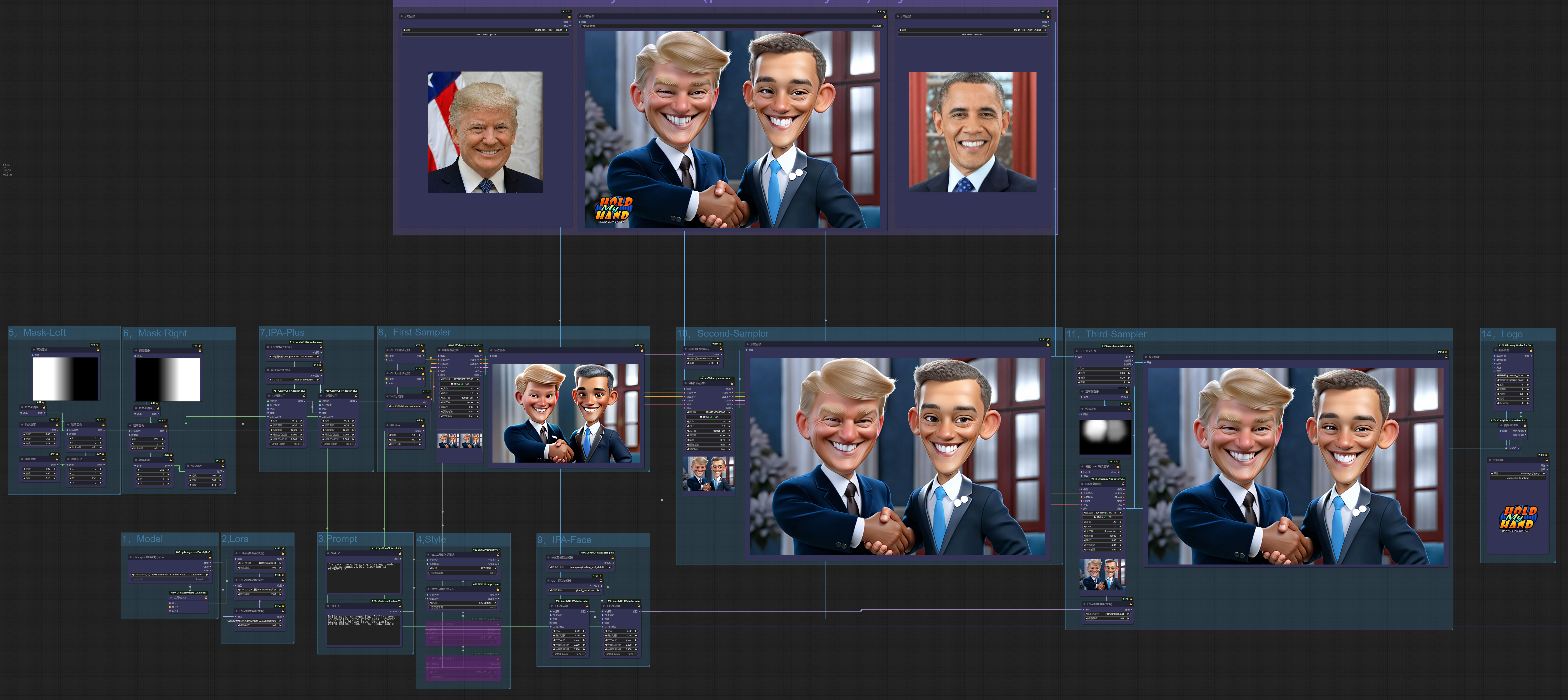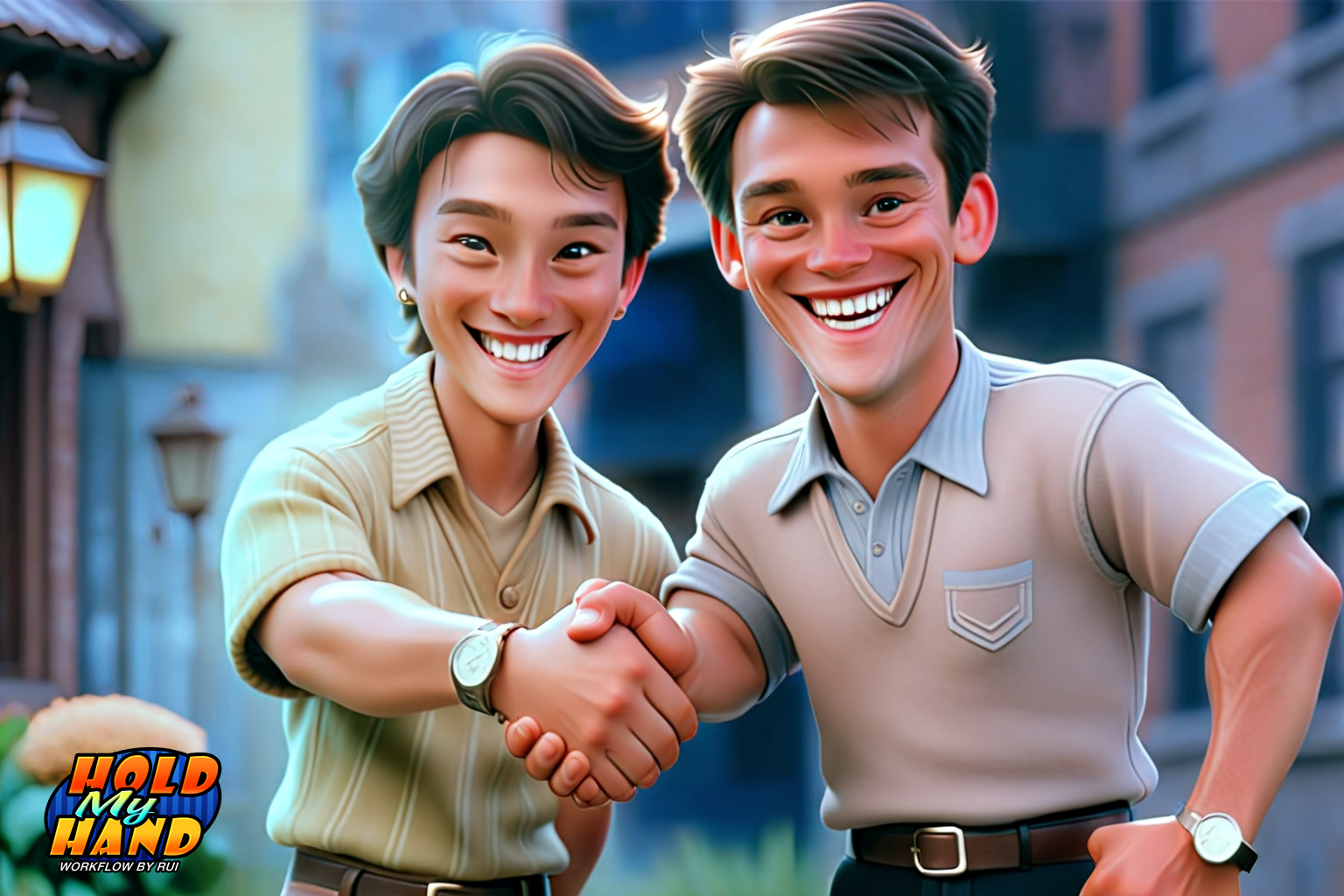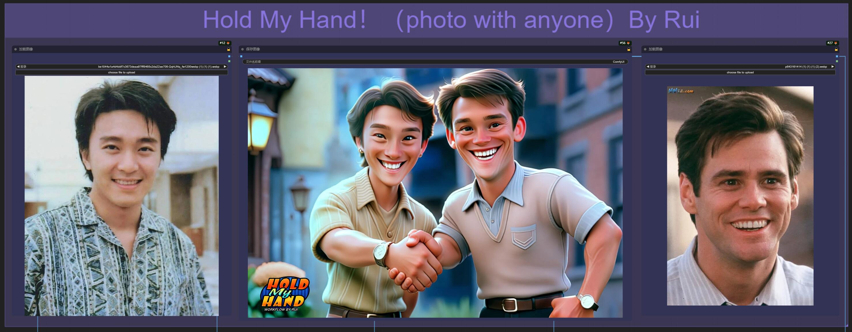 Based on CuteYou's cartoonish style, I've crafted two new co-photo workflows. One is titled <You and Me!>, designed for creating couple photos, and the other, <Hold My Hand>, is meant for creating handshake photos. By simply uploading two pictures, you can transform them into cartoon-style combined photos. You can not only create a blend of real people but also blend with anime characters.I've uploaded a demo video for clarity on how these workflows function.