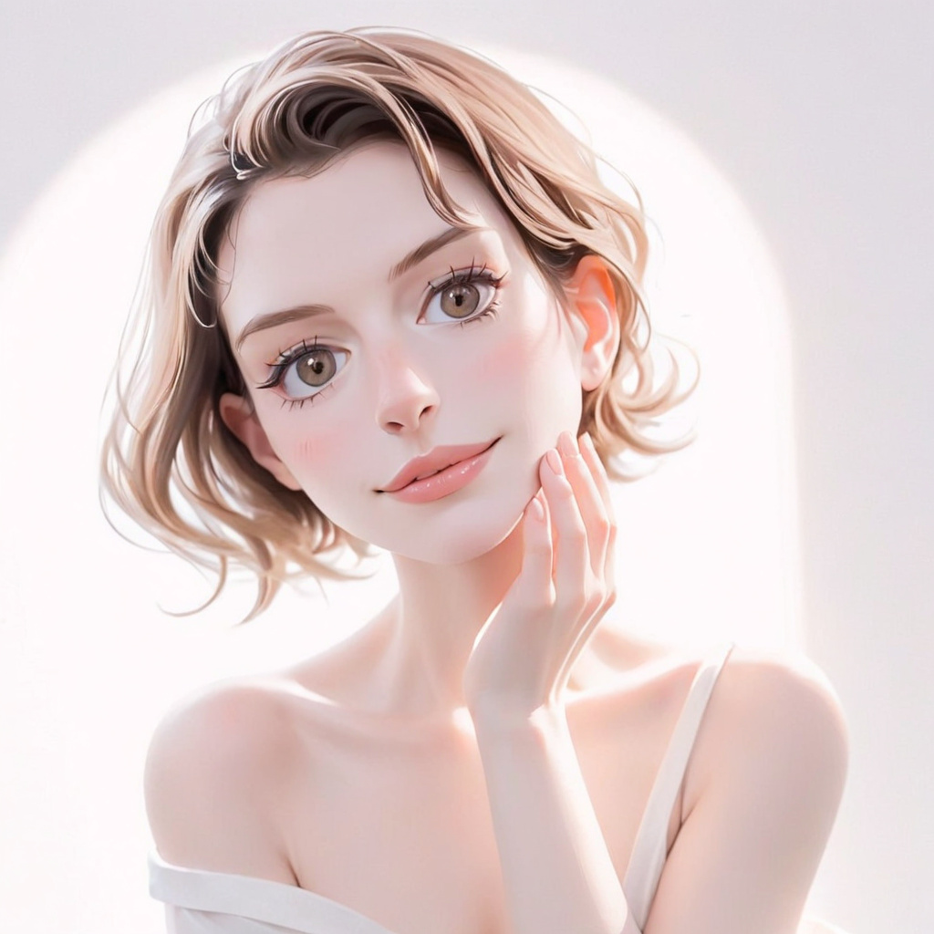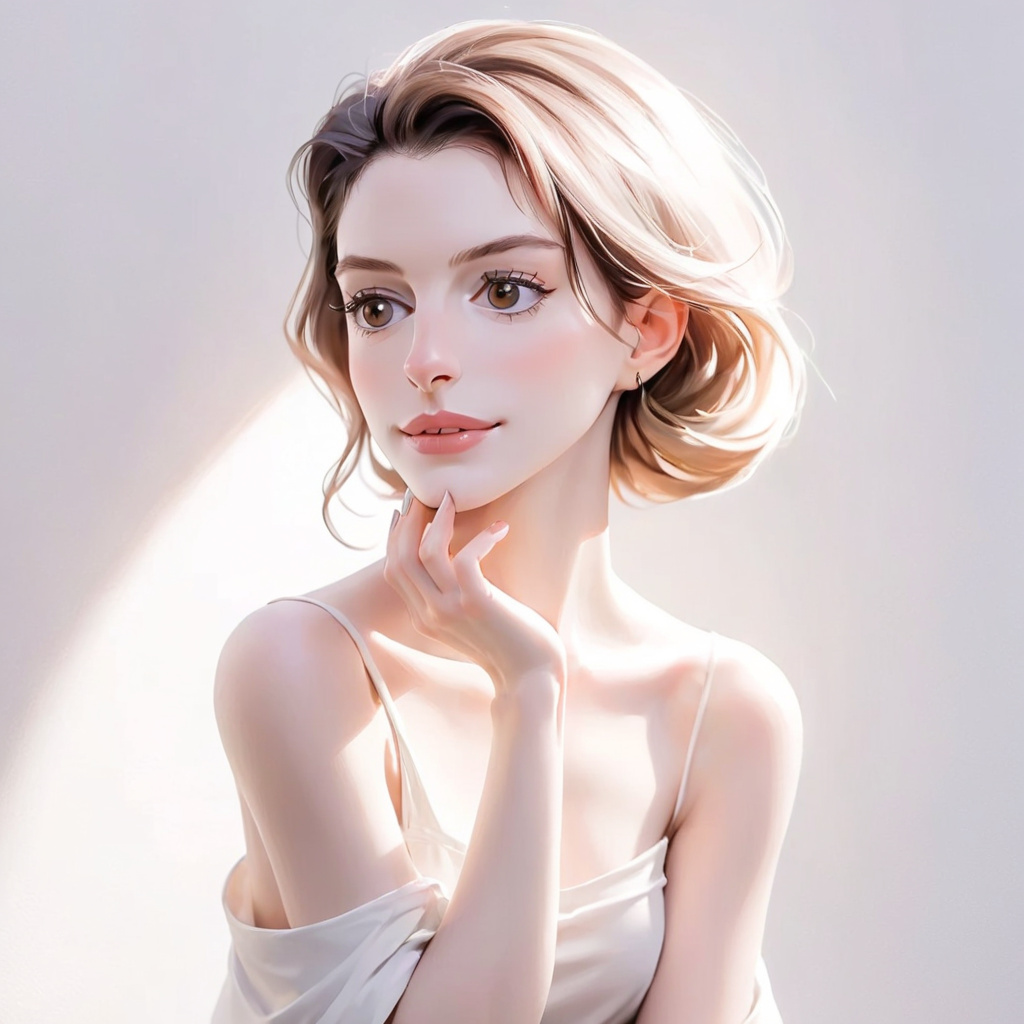 1 girl img,light shoulder,white_background,fair skin,minimalist style,artistic portrait,elegant,soft lighting,feminine,neutral tone,clean composition,beauty,skin care,exquisite,tranquil mood,calm posture,professional photography,smooth skin,fine art photos,fashion,high quality images,indoor environment,natural nails,light and shadow,aesthetics