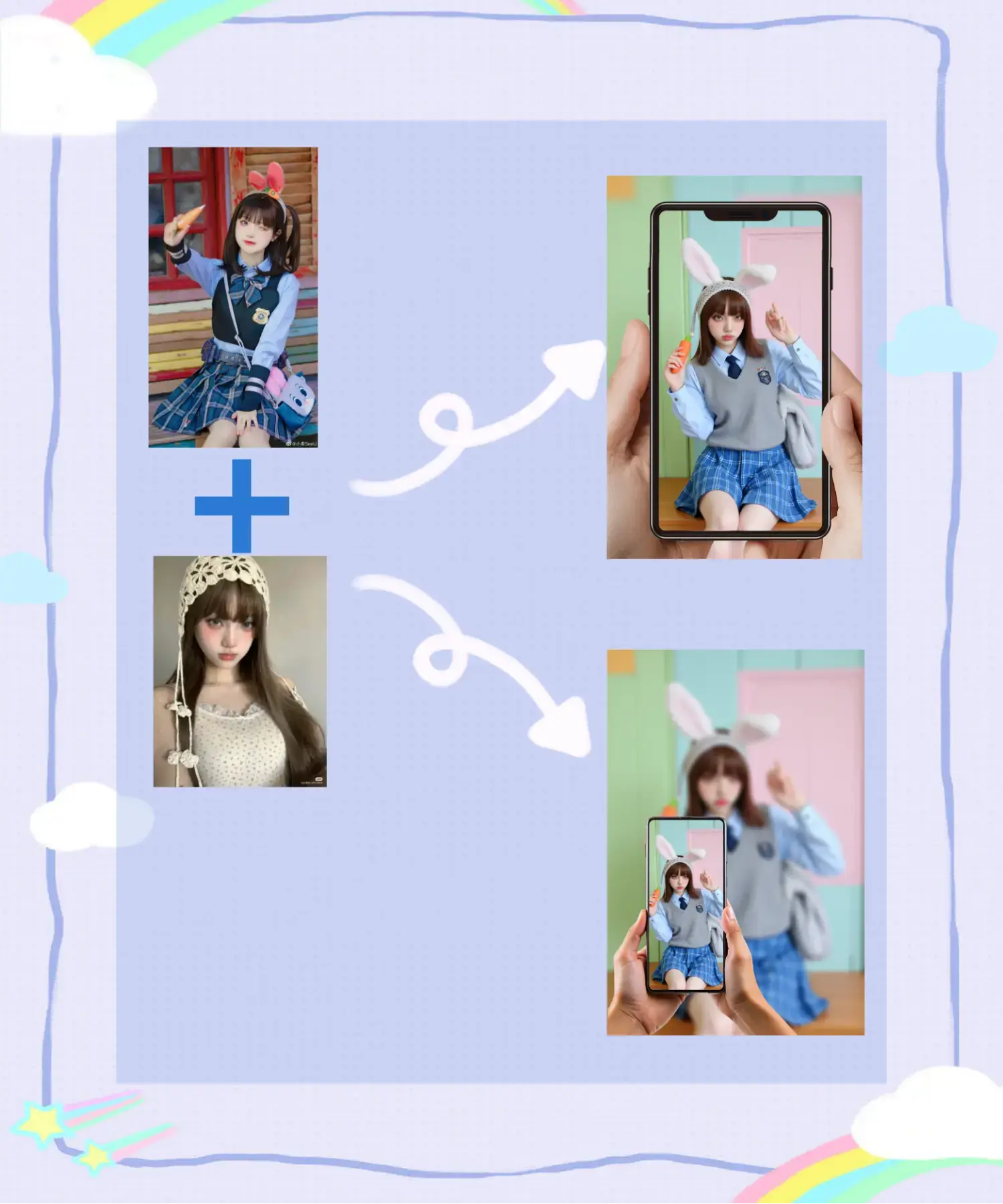 Whether it is for fashion lovers who want to try different dressing styles on their faces, or for creative workers seeking novel image processing methods, this process can meet your needs and bring you unexpected surprises and gains. Come and join the ranks of experience!