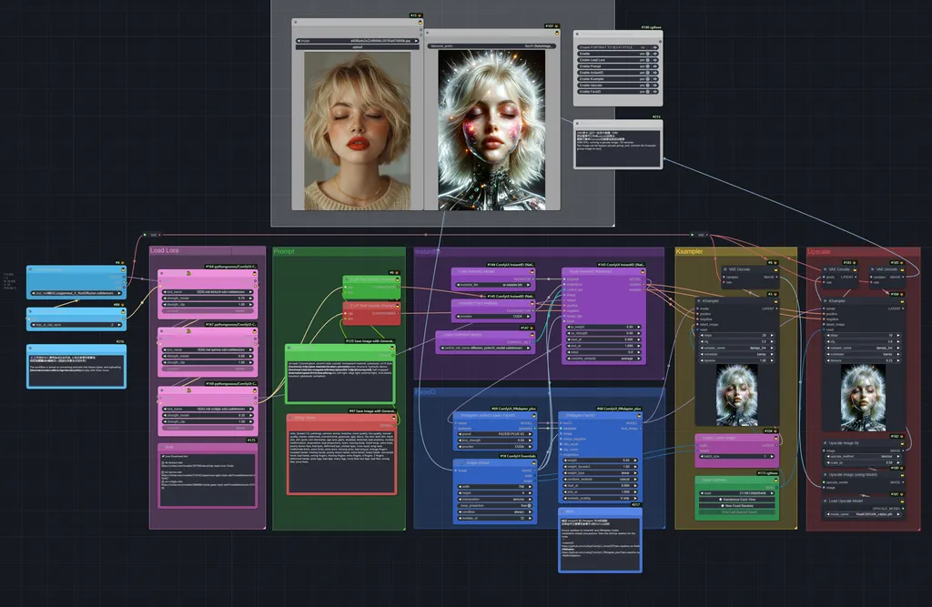 🔮工作流针对人像转换成未来风格, 上传半身像效果最佳, 也可以多测试一些玩玩~(插画和场景会识别失败)